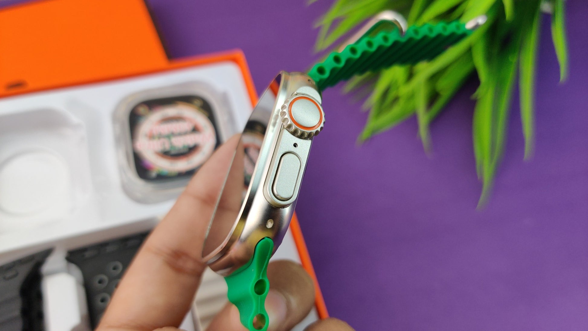 i20 Ultra Max Suit with Earphones 7 in1 set with earbuds - Ultra Smart Watch 7 In 1- i20 Ultra Smart Watches - Ultra 10 in 1- T900 ultra Smart Watches- Ultra 7 in 1- With Wireless Charging Capacity - Ultra 7 in 1 - i20 ultra watch with Golden strap .